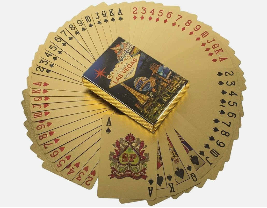 24K plattiertes Deck- Ein luxuriöses Deck in Standard-Pokergröße mit 52 Spielkarten plus 2 Jokern, überzogen mit 24-karätigem Gold.