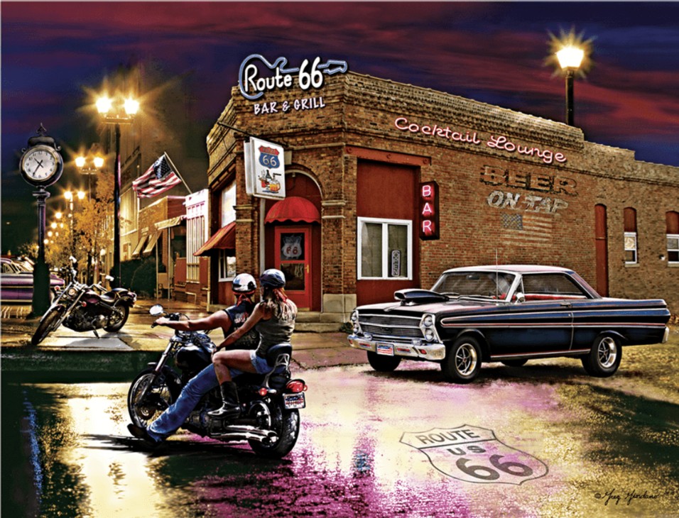 US Aluschild 20 x 30 cm: Route 66 - Bar & Grill - Cocktail Lounge